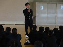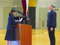 ●在校生入場して着席したあと、鈴木生徒会長が全員に「声かけ」をしました。「声かけ」の内容は、「3年生が良い思い出になるように、自分たちの態度や声を出して盛り上げていこう!」というようなことを開会前に話してくれました。生徒主体の「卒業式」の雰囲気作りを生徒会長が考えてくれました。「会長、ありがとうございます!」