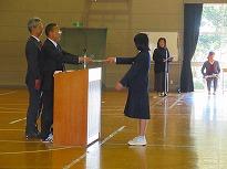 体育館の式場で証書を授与した生徒や校長室で授与した生徒もいました。それぞれに、中学校の出口である「卒業式」を体験できてよかったなと、私は思いました。