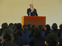 ●斎藤満則同窓会長さんに御来校をいただき、あいさつと記念品贈呈をしていただきました。平成28年度末、北中の卒業生合計は1万3千667名です。
