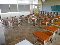(学びの共同体 机の基本体形 どのクラスもコの字型になります)