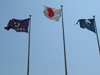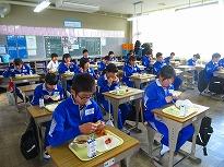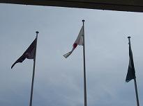 (今日の給食 中華風3品) (青空に国旗がたなびいています)