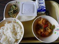 (今日の給食 久しぶりに焼きそば) (青空の午前中でした)