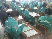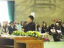●次に生徒指導、生活指導について、久郷先生が話をしていました。******生徒はメモを取りながら、ほとんどが真剣に聞いていました。