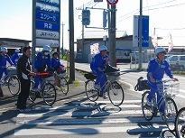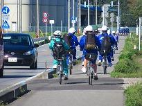 ●自転車運転のようすを見ると、おおむね車の迷惑にならない運転ができているようです。かごにヘルメットを置いて、ノーヘルの男子2名がいましたが、職員の顔を見るとサッとかぶっていました。