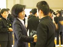 このことで、5名の先生方は2年、3年の生徒たち全員と「握手」や「ハイタッチ」、「ことばかけ」をして体育館を後にしました。