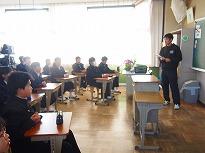●次に生徒指導、生活指導について、久郷先生が話をしていました。******生徒はメモを取りながら、ほとんどが真剣に聞いていました。