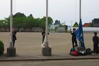 (今日の給食 ひじきの混ぜご飯) (校旗が大きく靡いていました)