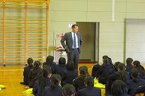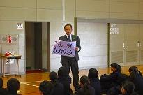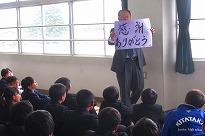 〇町中学生海外派遣事業説明会・・・・・・本日、昼休み町生涯学習課の職員とALTレオーネ先生が来校し、2年生を対象に事業の説明会がありました。