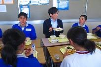 (2年1組で会食 ダビアン先生と瀧スクールカウンセラー)