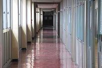 (2階廊下 直線で約150mある廊下 他校にはない特徴の一つ)