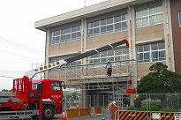 (足場組み立て 校舎を全面、囲む工事がはじまりました)