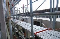 足場の各キット(部品)も進化していて、すべて脱着式になっています。みるみるうちに3階まで組み上がっていきます。