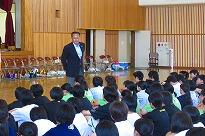 ●講話では・・・小堀教育長が学校のようすや学校建設、コミュニティスクールの推進などンいついて講話がありました。