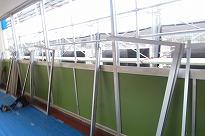 ******明日朝、生徒がこれまでの昇降口から入ってください。新調した下駄箱の中に、シューズを入れて教室に入ってください。 夏休み中5週間を使い、工事の6割進捗したと、現場副監督が話していました。