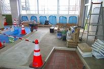 ●工事場所は、校舎1階の廊下と来賓玄関、相談室、職員更衣室、印刷室です。床張り替えと壁塗装、強化ガラスへの交換工事が行われます。