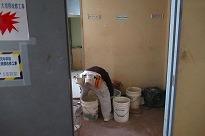 ●校舎南面の塗装が完了し、ピンク色と青、緑色の可愛らしい校舎が見えます。校舎内部では、東側1階から3階までのトイレ工事は完了しました。男女とも洋式のトイレに換わっています。