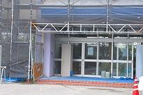 〇大規模改修工事関係・・・・・・来賓玄関と保健室のところに、工事用の開閉扉が設置されました。