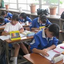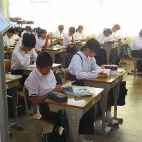 ●今日は、「漢字」の時間で、各クラスとも50題の漢字プリントが配られ、生徒は15分間、真剣に正答の漢字を書き込んでいました。