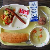 (今日の給食 米粉パン他) (朝、生徒会が国旗を掲揚)