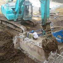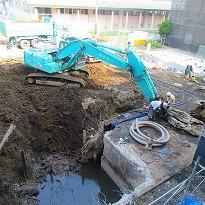 (旧浄化槽の撤去作業 地下水が出てきて苦戦しています)