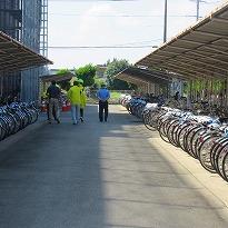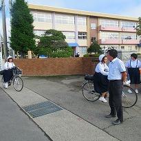 町輪業組合の2名と警察署員1名、町担当2名が来校し、生徒の自転車の点検をしていただきました。