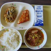 (今日の給食 煮物他) (国旗掲揚 生徒会役員)