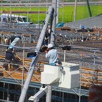 (電柱移動のためのNTT工事) (校舎の囲い 取り外し工事中)