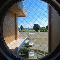 (校舎2階の丸窓から 校庭や東小工事風景が見えるように)
