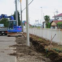 〇北中西側県道拡幅工事・・・・・・昨日からはじまった工事ですが、今日は道路との境のフェンス(校門の北側部分)をすべて取り去る工事をしました。