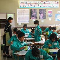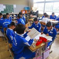 (朝の読書活動 15分間、担任も集中して読書をしています)