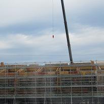 〇新築 東小学校の外観が見えてきました・・・・・・2階部分と屋根の部分の型枠工事が進行しています。昨日から今日にかけての工事で、東小学校の外観が見えてきました。