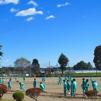 ●風は強いですが秋晴れの中で、校庭で体育科の授業が行われていました。単元は陸上で「100m走」や「走り幅跳び」の練習や記録測定などをしていました。
