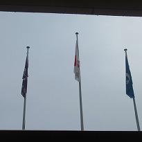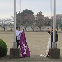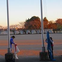 (国旗の降納 生徒会役員3名が進んで降納をしてくれました)