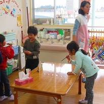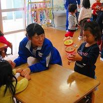 ●前回の2組と同様、家庭科で作成した自作「おもちゃ」を持参して、約1時間、園児たちと遊びました。