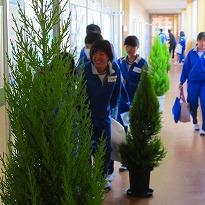 (生徒会役員 国旗掲揚のようす) (1階廊下 クリスマス気分に)