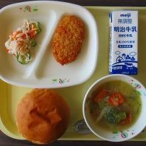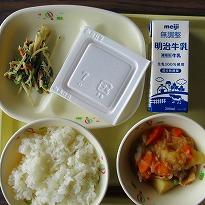 (今日の給食 豚汁他) (お昼頃の空 青空と白い雲)