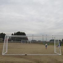 (寄贈いただいたサッカーゴール サッカー部が意欲的に練習)