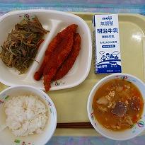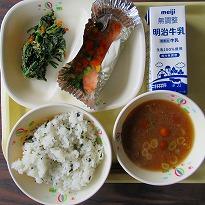 (今日の給食 なめこ汁他) (お昼頃には晴れ間に)