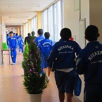 (1階廊下歩行風景 クリスマスツリーの右側を1列で歩行)
