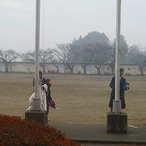 (生徒会役員 国旗掲揚をしてくれています) (朝の校庭のようす)
