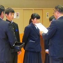 〇ブレックスカップの報告に・・・・・・2週にかけて開催された「ブレックスカップ」の結果報告に、バスケ部の齋藤部長と山本副部長が校長室を訪ねてきました。