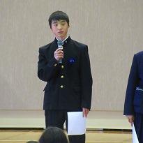 ●学年ごとの欠席者数・・・1年 2名(病気等2) 出席停止4(インフルエンザ4) 2年 5名(病気等4通級1) 早退1 3年 6名(病気等5通級1) 遅刻2 出席停止3(入試1インフルエンザ2) 職員 0名 でした。