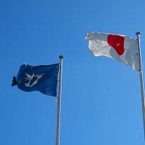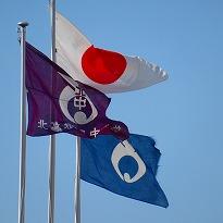 (お昼の国旗掲揚塔 穏やかな空)(今日の夕焼け 綺麗なオレンジ色)