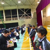 (表彰式後集合写真の撮影 中・高、職場・北中生徒と)