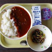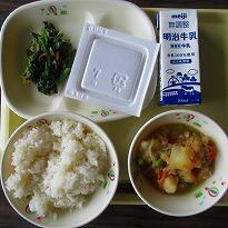 (今日の給食 ポークカレー他)  (11時30分ごろの校庭)