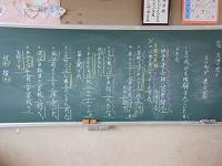 1年生の教室の黒板に国語の授業の内容が残っていました。