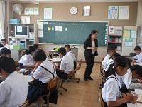 4時間目は教育実習生の「研究授業」でした。保健体育のバレーボールの学習です。なかなか難しいスパイクの練習でしたが、バレーボール部員が教えてあげて、学び合う姿が多く見られた授業でした。バレーボール部員以外の人も上手にスパイクが打てるようになりました。