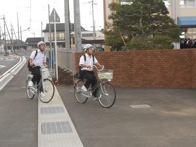 笑顔であいさつしました。 雨でも自転車で登校しています。