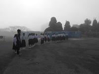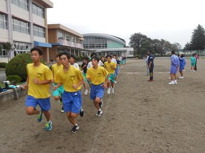 駅伝部の朝練習後の様子 風邪を引かないように・・・・・