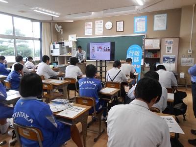 3年生を対象とした「行政相談」の授業が行われました。総務省 栃木行政監視行政相談センター他、5名の方が来校し、道路や公共施設、社会福祉等で困っていることがある場合の相談等についてお話しくださいました。実際に過去に「通学路が暗い」という要望を伝えたところ、外灯が設置されたそうです。この授業を通して、地域で困っていることを要望したいと思います。